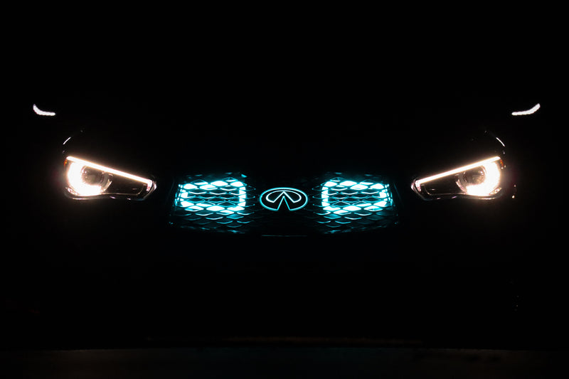 Upgrade your 2014-2024 Infiniti Q50 with the Velossa Tech BIG MOUTH LIT KIT, combining an aggressive look with enhanced performance. Compatible with stock or aftermarket cold air intakes, this innovative system features uninterrupted light diffusion for a striking effect.