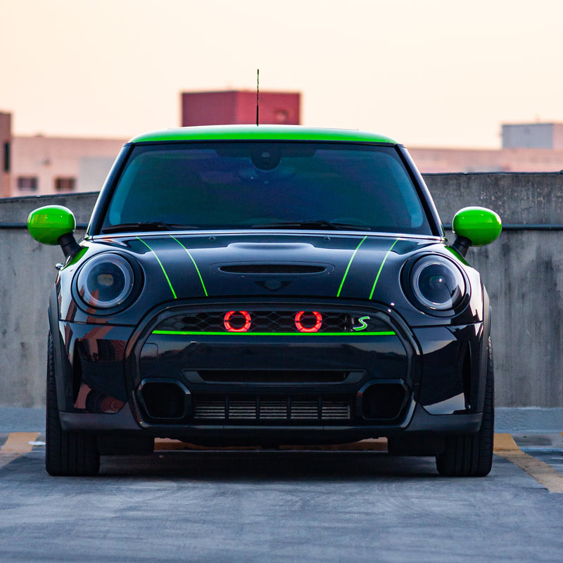 Upgrade your 2014-2024 MINI Cooper S (F54/F55/F56/JCW GP) with the Velossa Tech BIG MOUTH LIT KIT, combining an aggressive look with enhanced performance. Compatible with stock or aftermarket cold air intakes, this innovative system features uninterrupted light diffusion for a striking effect.